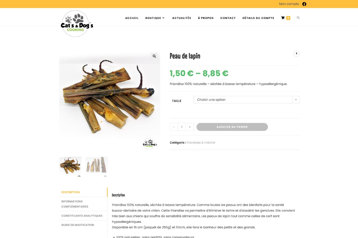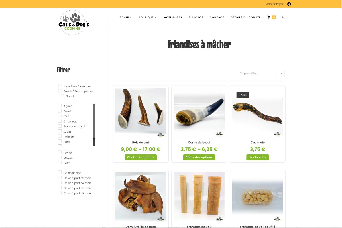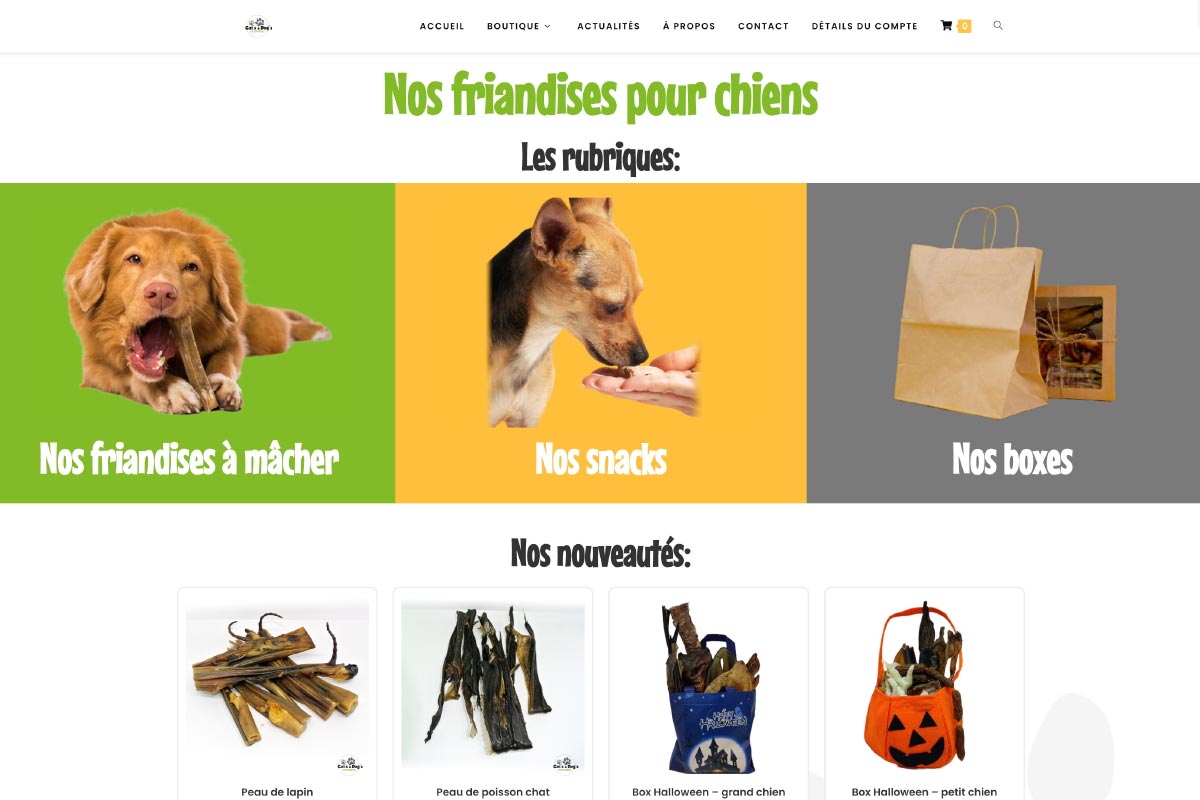 Création d’un site de vente en ligne de nourriture naturelle pour chien. Site proposant la livraison à domicile ou l’enlèvement d’après créneaux horaires en point de vente.