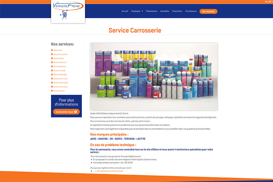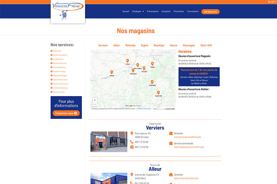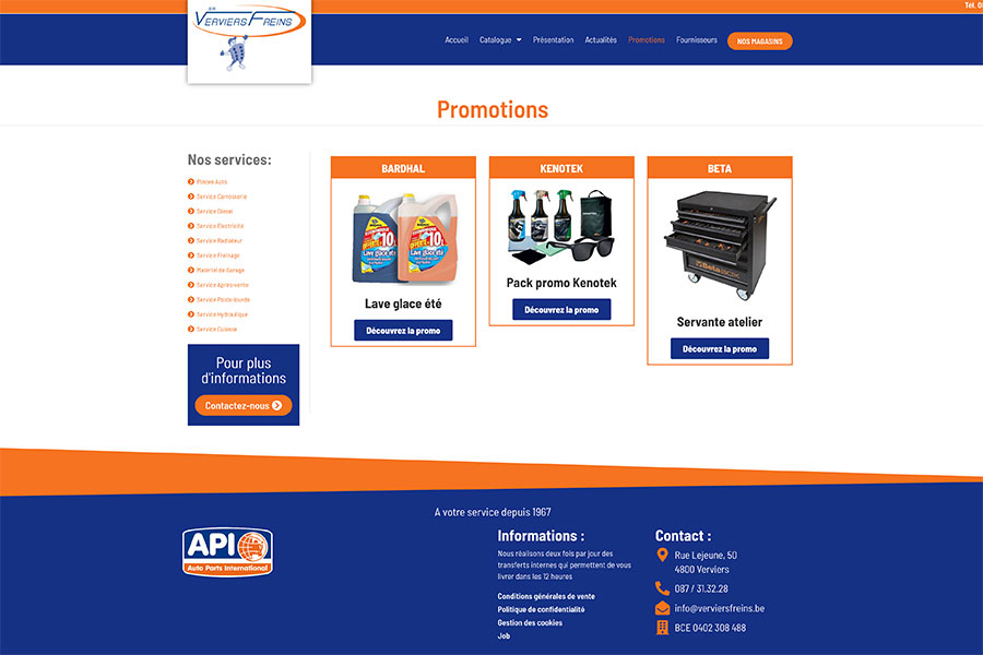 Verviers Freins, partenaire des garagistes et des particuliers, grossiste en vente de pièces détachées et matériel divers pour l’automobile. Compte 6 points de vente et ateliers mécaniques spécialisés en province de Liège.